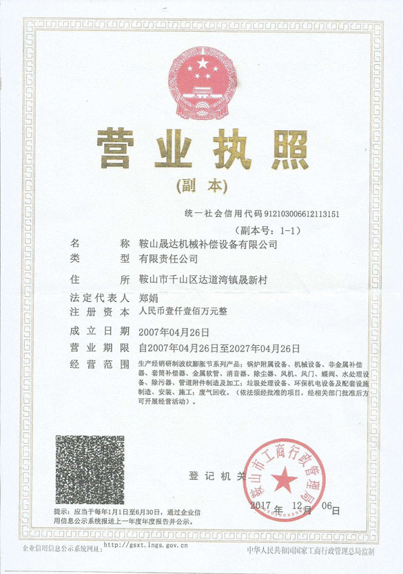 鞍山晟達機械補償設(shè)備有限公司成立于2007年4月,是生產(chǎn)、經(jīng)銷、研制波紋膨脹節(jié)系列產(chǎn)品,非金屬補償器,套筒補償器,橡膠接頭,電動擋板閥,卸灰閥,蝶閥,消音器,刮板機,除塵設(shè)備等環(huán)保類設(shè)備的專業(yè)生產(chǎn)廠家。
